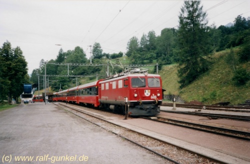 Einfahrt de Bernina-Express nach Tirano in Filisur.