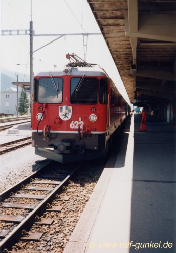 Das Vorbild der ersten roten Ge 4/4 II der Fa. LGB, die 622 Arosa im Bf. Davos Platz