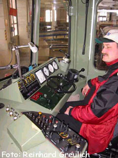 Hier beim "Probefahren" einer Ge4/4 II der RhB im Lokschuppen in Landquart im Februar 2003